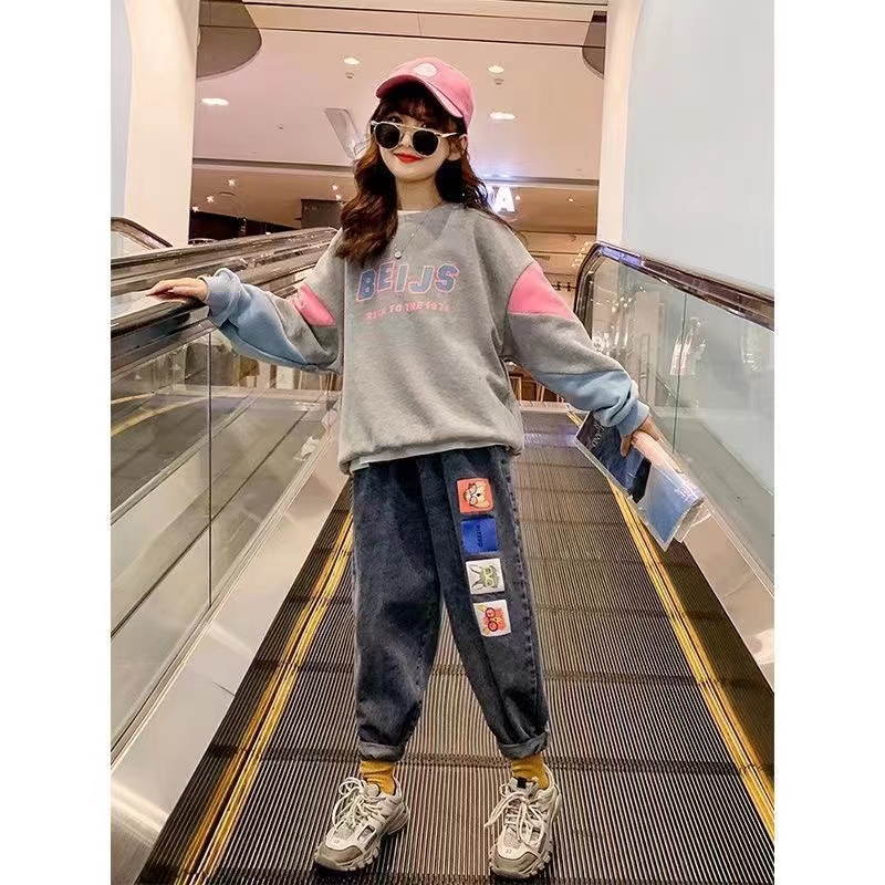 キッズ 子供服 上下セット セットアップ トップス+デニムパンツ 2点セットキッズ ベビー マタニティ キッズファッション スーツ カジュアルセットアップ カジュアルパンツセット