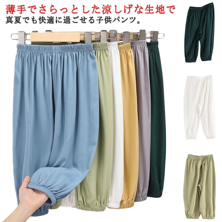 男の子 ロングパンツ 子供 長ズボン ゆったり ボトムス 夏用 キッズ 10分丈 蚊よけパンツ リラックスパンツ ルームパンツ