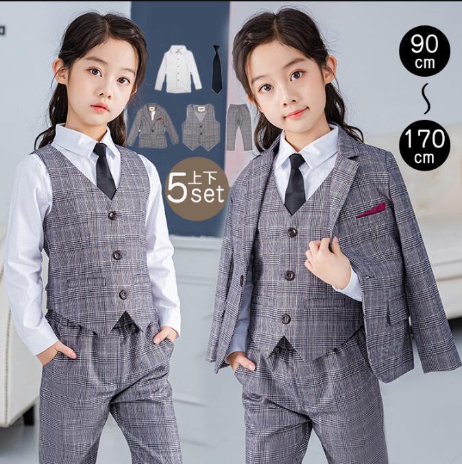 女の子スーツ 子供服 イギリス風 キッズスーツ 卒業式 スーツ 女の子 キッズ フォーマルスーツ スーツセット 子供スーツ 子供服 幼稚園 小学生 制服 演奏会 入学式 子供用 チェック柄