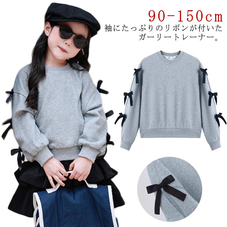 袖にたっぷりのリボンがかわいい パフスリーブ トレーナー プルオーバー 長袖 トップス キュート 春 秋 冬