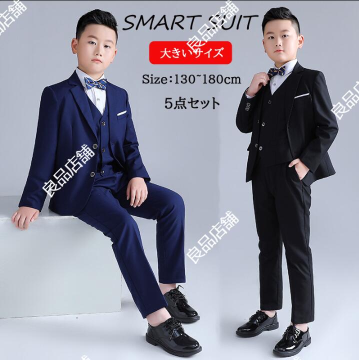 結婚式 発表会 パーティー キッズスーツジャケット+ズボン+ベスト+リボン+長袖シャツキッズ ベビー マタニティ キッズファッション スーツ カジュアルセットアップ スーツ