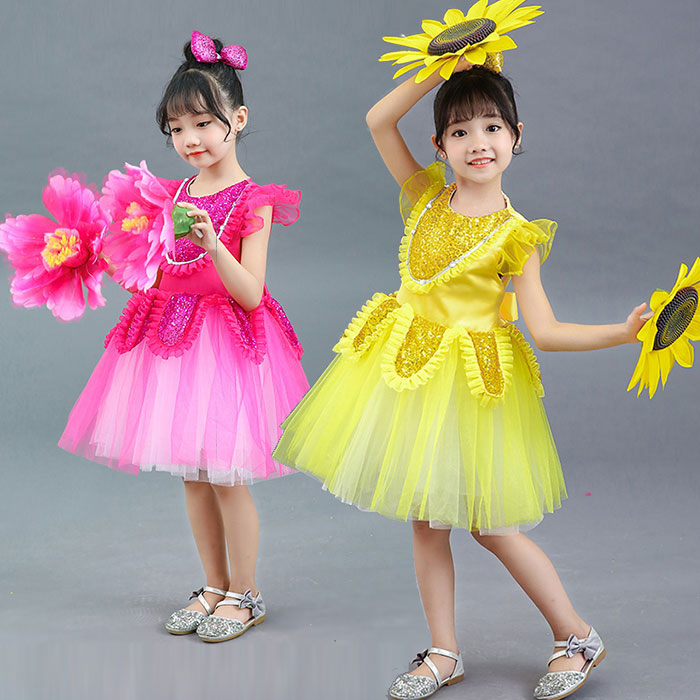 ダンス 衣装 キッズ 子供 ガールズ 女の子 ワンピース リボン ヘアアクセサリー スパンコール チュチュスカート フラワー付き 100 110 120 130 140 150 160 170cm 子