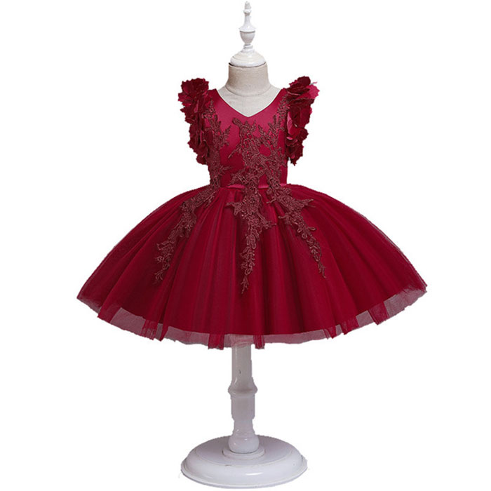 女の子 ドレス キッズ ジュニア ドレス 子供ドレス 花柄レースワンピース 110 120 130 140 150 160白 赤青 灰 ピンク ワインレッド 結婚式 ピアノ発表会