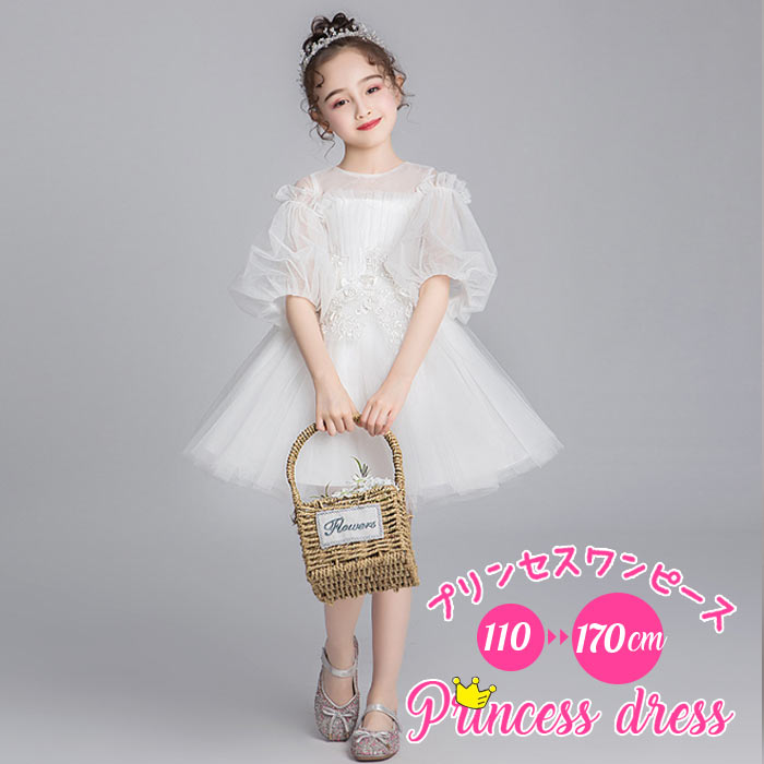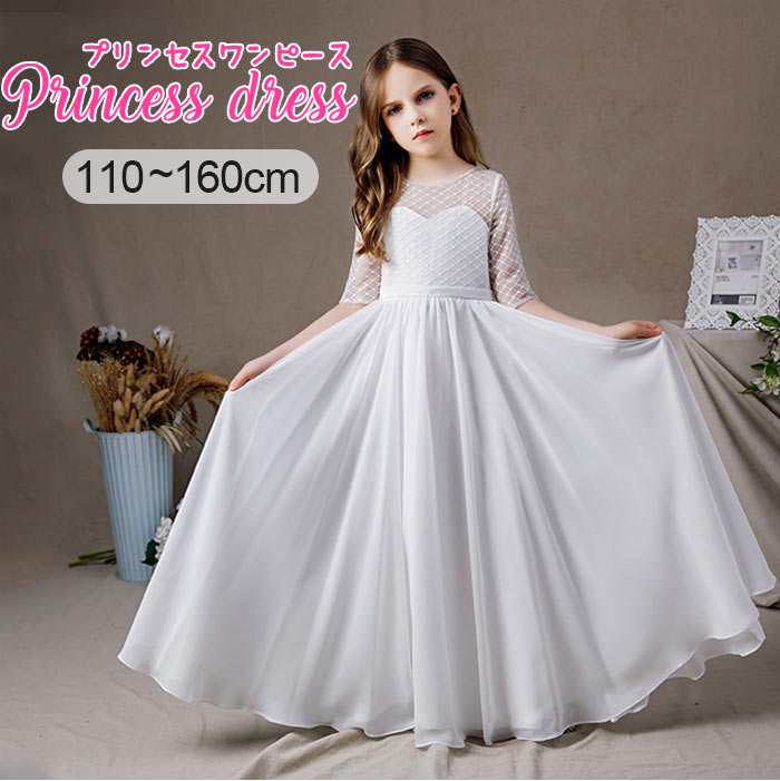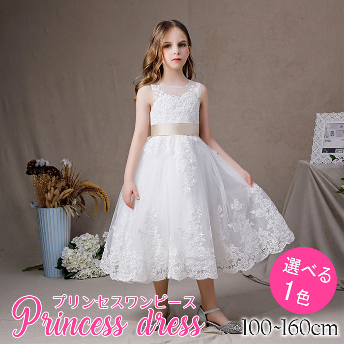 子供ドレス80 90 ピアノ発表会 ドレス 中学生 ミモレ丈 白 プリンセス ワンピース 150 160 140 レース 高級感のある上品なドレス 結婚式 パーティー 誕生日会中学生
