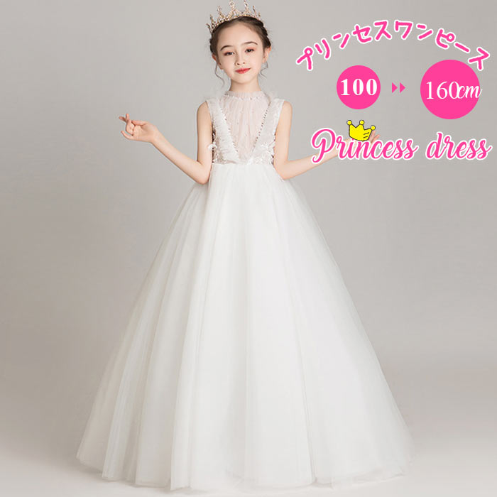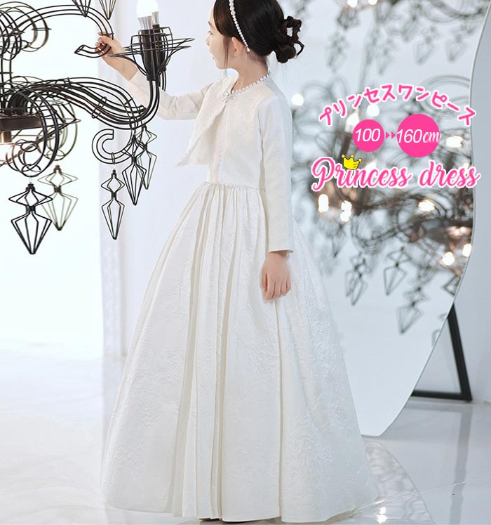 おしゃれな白ドレスキッズ用 オールシーズン 上品なおしゃれなピアノ 発表会ドレス ロング 150活躍で 大きいサイズ 結婚式 ピアノ発表会 ドレス中学生 140 150 160