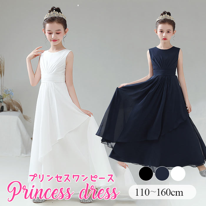 発表会 ドレス誕生日会子供プレゼントドレス 中学生 140 150 160 無地 結婚式ロング丈 シンプル ピアノ発表会 ワンピース 上品 白 黒 紺とても高級感のある上品なドレス