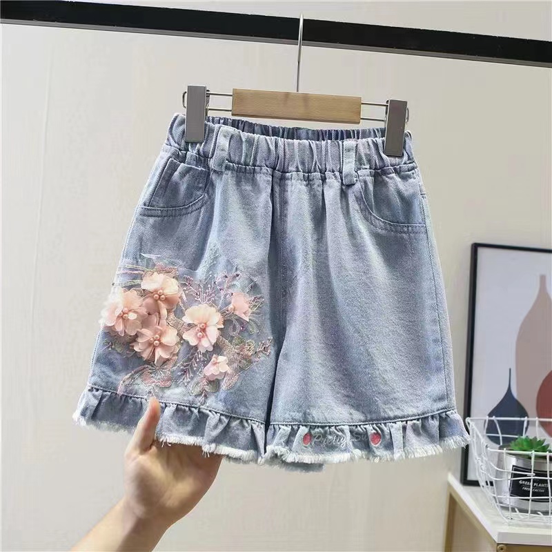 キッズ 子供服 ショートパンツ デニムパンツ 女の子 裾フリル 女の子半ズボン ショーパン フリルショートパンツ デニムショートパンツ 短パン 春 夏 ゆったり 可愛い ウエストゴム 裾フリンジ ジュ