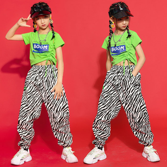 キッズ 子供用 ダンス衣装 ヒップホップ ゼブラ柄 ロングパンツ 女の子 ジャズ ダンス 衣装 ジュニア ガールズ ダンス パンツ ロング丈 黒 派手 目立つ ジャズ ダンス 服 レディ