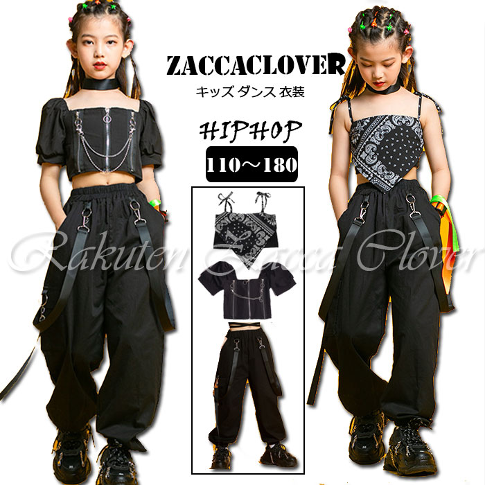 キッズ 子供用 ダンス 衣装 ヒップホップ セットアップ ブラック 黒 衣装 キャミソール ノースリーブ トップス ショート丈 へそだし 黒 パンツ ロング丈 おしゃれ レディース ジュニア ダンス衣