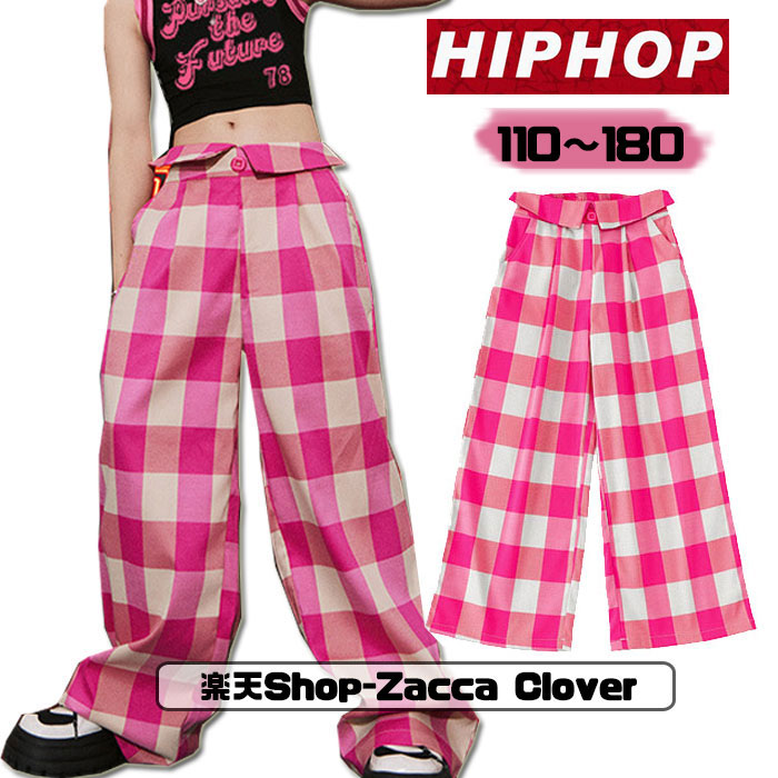 キッズ 子供用 ダンス衣装 ヒップホップ ダンスパンツ ロング丈 ピンク チェック柄 かわいい 女の子 ジャズ ダンス 衣装 ジュニア ダンス 発表会 派手 目立つ ダンス服 HIPHOP 大きいサイ