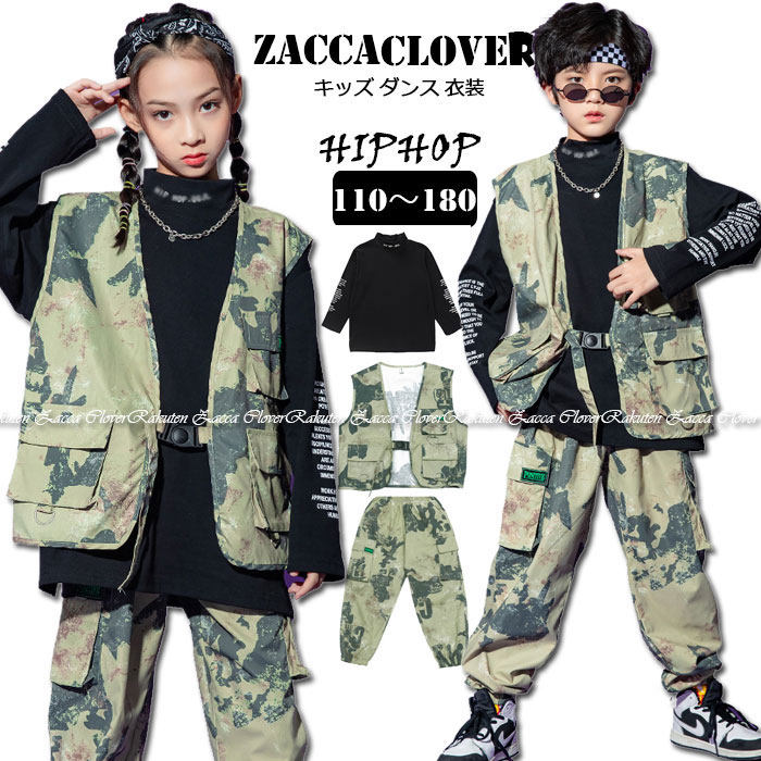 キッズ 子供用 ダンス衣装 ヒップホップ セットアップ 迷彩 パンツ ベスト ダンス 練習着 子供 ロング丈 女の子 男の子 ジャズ ダンス 衣装 ジュニア ガールズ 派手 目立つ ジャズ ダンス 服