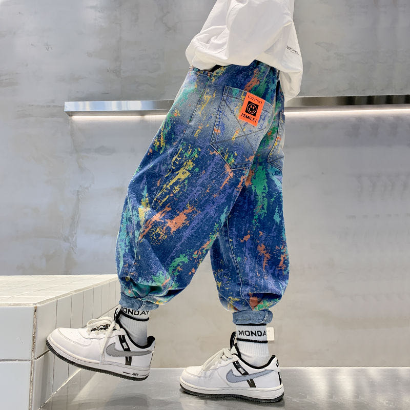 子供服 デニム パンツ ジーパン ロングパンツ 長ズボン こども 総柄 おしゃれキッズ ベビー マタニティ キッズファッション パンツ