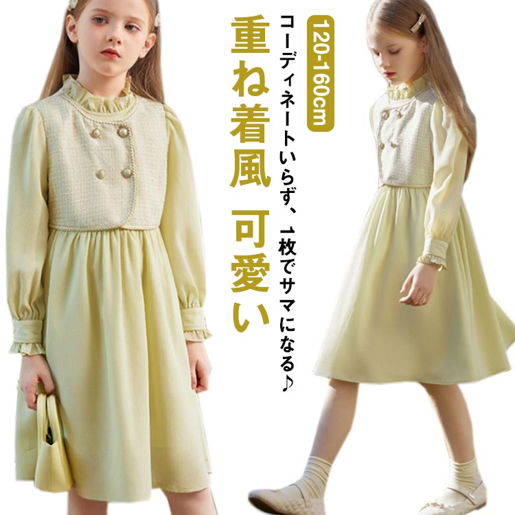 お姫様 ワンピースドレス 春ワンピース 卒園式 フェイクレイヤード ワンピース 女の子 子供服 子供 可愛い 出かけ着