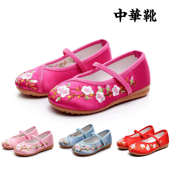 子供靴 シューズ 女の子 キッズ 子供 こども チャイナ靴 バレエ靴 発表会 結婚式 ストラッブ 花柄刺繍 ピンク ブルー レッド 子供靴 靴 女の子 かわいい コスプレ ステージ 靴