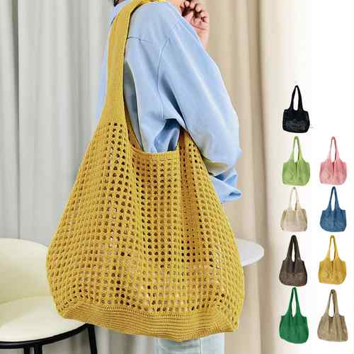 レディース クロシェ編み 肩掛けバッグ 4大容量ビーチバッグ 無地 シンプル ナチュラル 可愛い9色展開 韓国軽量 折り畳みバッグ 鞄 透け感手提げバッグ 柔らかい 肩掛け鞄