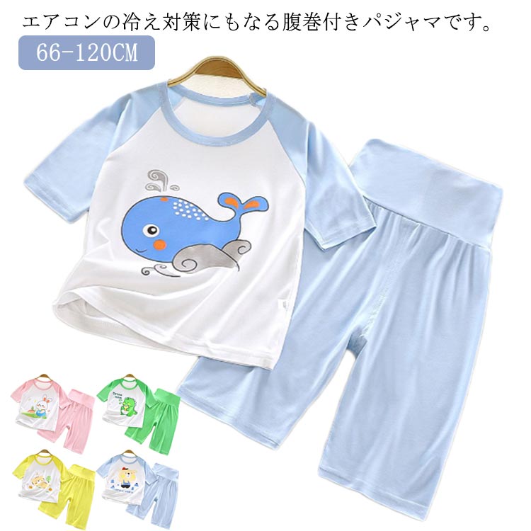 パジャマ キッズ 寝冷え対策 半袖 夏 部屋着 腹巻き付き 腹巻 セット 肌に優しい セットアップ 子供 寝冷え対策 ねまき 夏用 エアコン対策 73cm 80cm 90cm 100cm 110cm