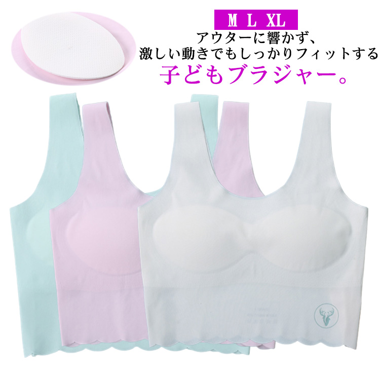 9-12歳 部活ブラ 綿 通気性 インナー ブラジャー こども 下着 コットン やわらかい スポブラ かわいい 無地 ブラ 楽々