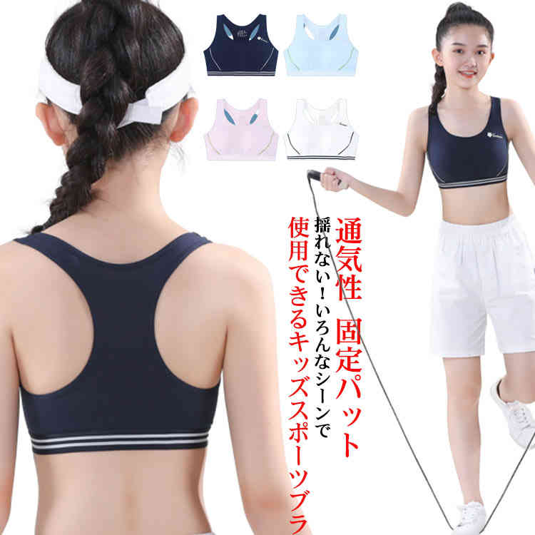 キッズスポーツブラ キッズブラジャー ジュニアブラ ノンワイヤ ブラ ホールド力よい テニス 体操 体育 部活 揺れない