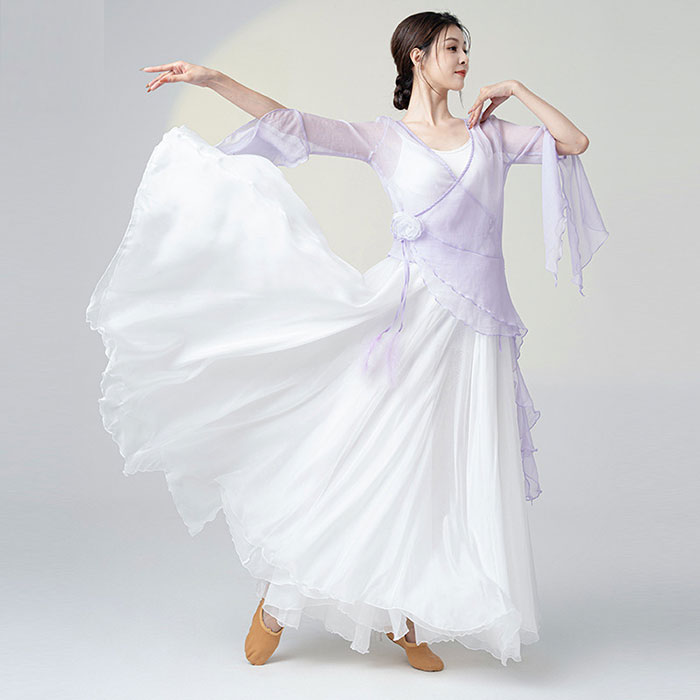 ダンス衣装 長袖 トップス ロング丈 シフォン 巻きスカート フレアスカート 広がるスカート ふんわり シフォン スカート ダンス レッスン着 レディース 大人 ダンス 発表会 ステージ 舞台 衣装