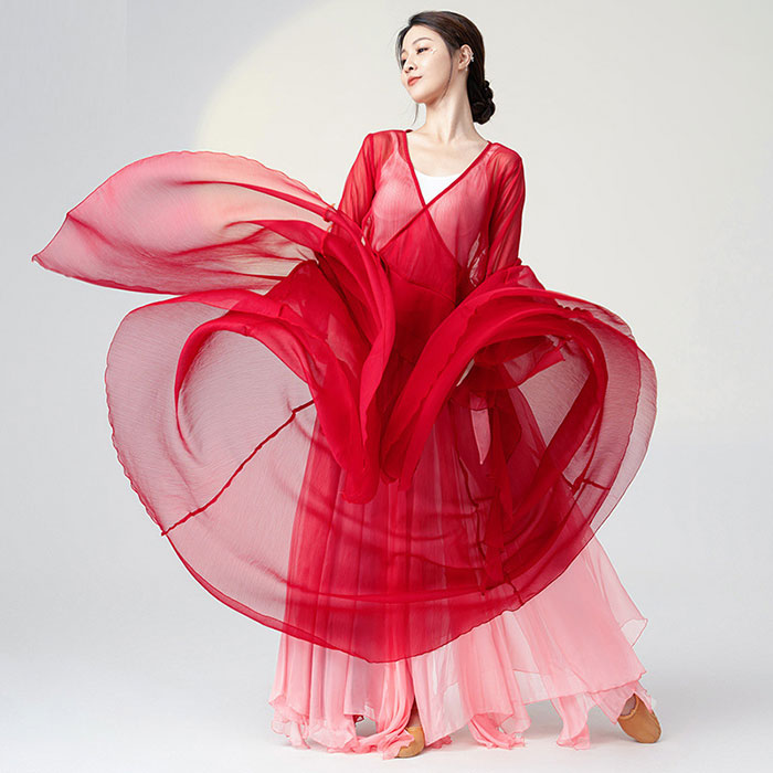 ダンス衣装 長袖 トップス ロング丈 シフォン 巻きスカート フレアスカート 美しい グラデーション ふんわり シフォン スカート ダンス レッスン着 レディース 大人 ダンス 発表会 ステージ 舞台