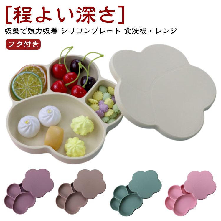 ニュアンス シリコンプレート シリコン 吸盤付き 強力吸着 プレート 離乳食 シリコン 食器 電子レンジ フタ ひっくり返らない すくいやすい 蓋付き 吸盤 ワンプレート 仕切り 便利アイテム 赤