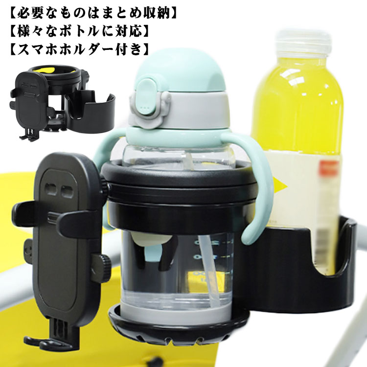 自転車や車いすなどにも装着可能♪ 1台多用 ツイン ボトルホルダー カップホルダー ベビーカー用ドリンクホルダー バイク スクーター 配達員