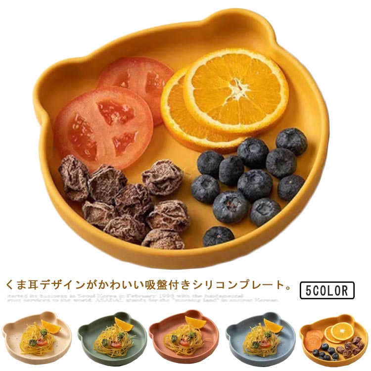 吸盤付き シリコンディッシュ ベビー食器♪ クマさん 食器 熊 赤ちゃん 離乳食 ひっくり返らないキッズ ベビー マタニティ 授乳用品 ベビー用食事用品 ベビー食器 プレート ボウル
