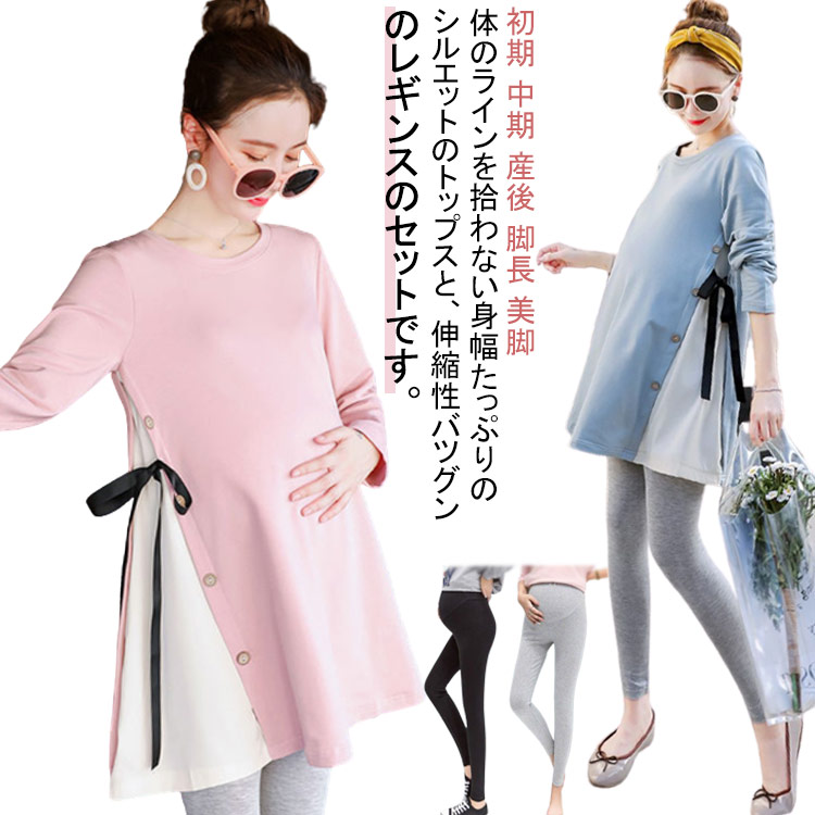 トレーナー 妊婦服 長袖 レディース 上下セット ボトムス マタニティウェア ロング丈 トップス ロングパンツ レギンス ゆったり かわいい セットアップ 着やせ おしゃれ 大きいサイズ 妊娠 初期