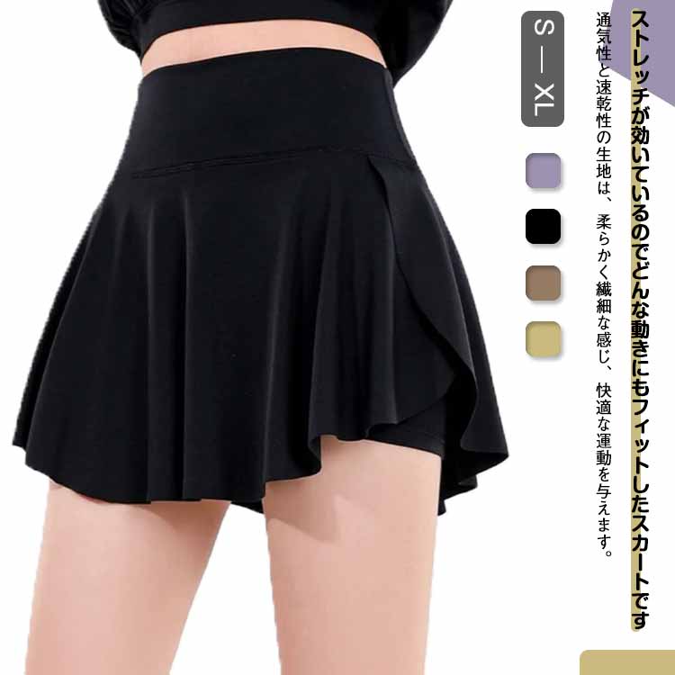 無地 スコート プリーツスカート ウエストゴム レディース インナー付 体型カバー 水着 ミニスカート スポーツウェア フィットネス ストレッチ ショートパンツ ストレッチ ヨガウェア パンツ付き ス