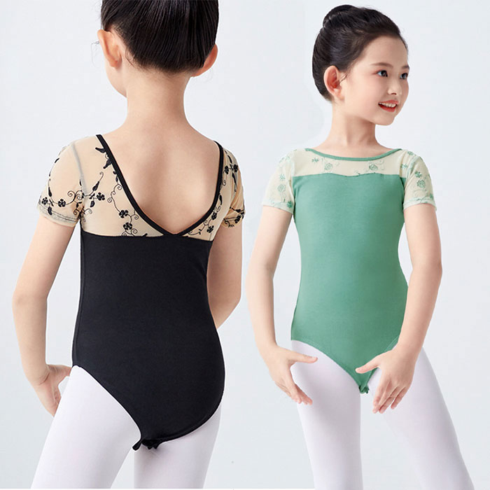 バレエ レオタード 子供 メッシュ 刺繍 ネックライン スカートなし ジュニア キッズ 女の子 バレエレオタード 可愛い レオタード 新体操 バレエ用品 ダンス 衣装 発表会 大きいサイズ 160