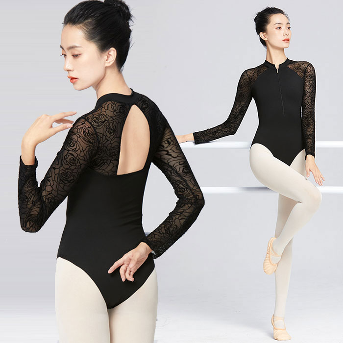 バレエ レオタード 大人 花刺繍 背中空き エレガント 大人用 バレエレオタード シースルー メッシュ おしゃれ 大人のレオタード ネック 長袖 大人バレエ バレエ用品 大人 バレエレオタード スカ
