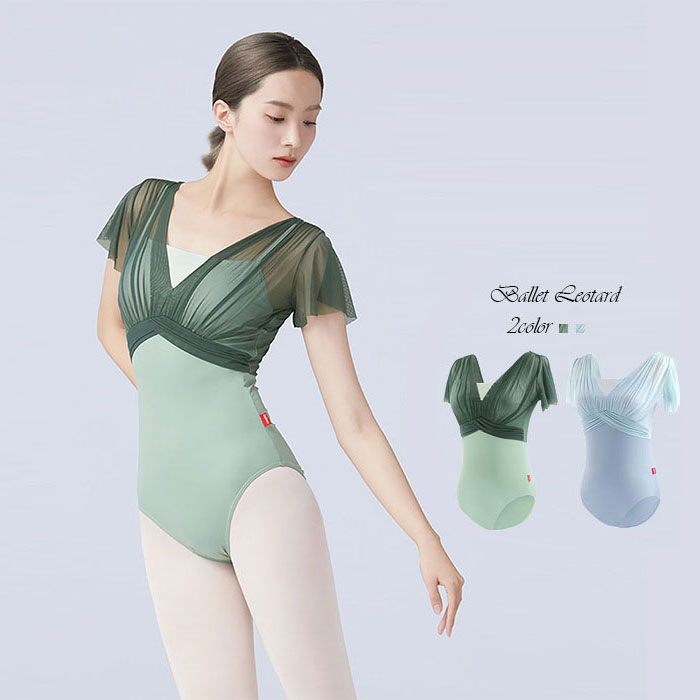 フレンチスリーブレオタード 可愛い 動きやすい レッスンウエアスポーツ アウトドア 体操 ダンス バレエ レオタード
