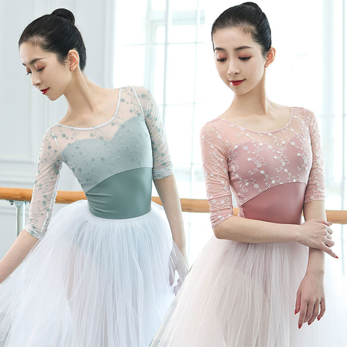 バレエ レオタード 大人 繊細な花刺しゅう レース エレガント 大人バレエ スカートなし 7分袖 レオタード レッスン着 練習 大人 ジュニア バレエ用品 可愛い バレエレオタード 大人用 おしゃれ