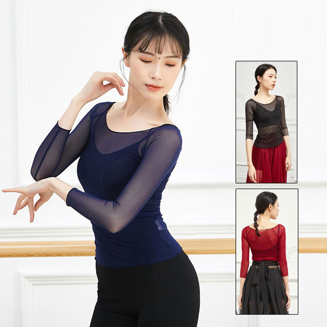 バレエ トップス 7分袖 メッシュ シースルー レディース 大人 バレエトップス 全12色 レッスン 着 ウォームアップ 大人バレエ バレエ用品 ダンス ヨガ トップス 社交ダンス バレエウェア ダン