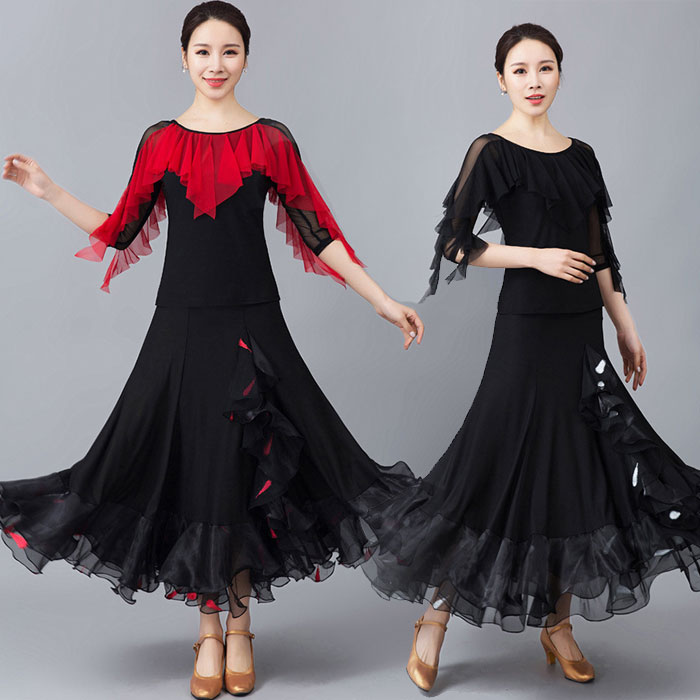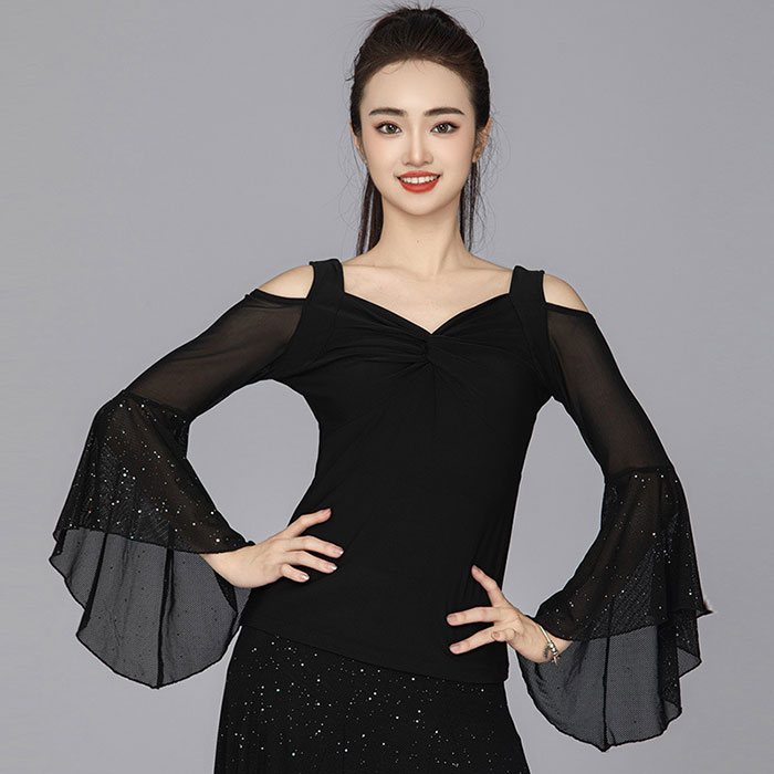 社交ダンス 社交ダンス衣装 衣装 社交ダンストップス エレガントストラップショルダーデザイントップス おしゃれ トップス ウェア ダンスウェア 透け感メッシュ 長袖 ブラウス ダンス レッスン ブラッ