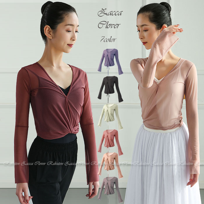 バレエ トップス 大人 メッシュ 長袖 ネック ウエスト巻き バレエトップス シャツ カットソー バレエ上着 動きやすい伸縮生地 冷え防止 ウォームアップ トップス バレエ ヨガ フィットネス 社