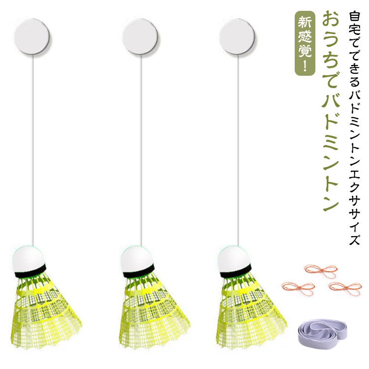 弾力ロープ40本 粘着フック3個 バランス紐3本 室内 セット 室内 練習器具 セルフ 自動リターン 光るバトミントンシャトル3個