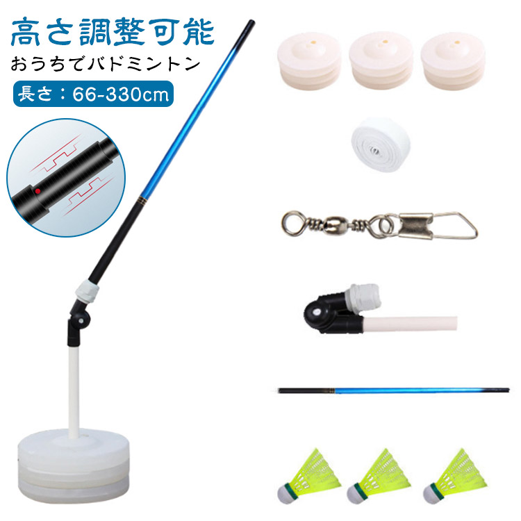 高さ調整可能 安定したベース バドミントントレーナー 自分1人でも練習 3つバドミントン付属 初心者 練習用 セット 初心者 バドミントン ポータブル伸縮弾性ロッド