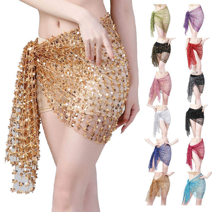 スパンコールフリンジヒップスカーフ ヒップカバー 腰巻き ショール アクセサリー 練習着 レッスン着