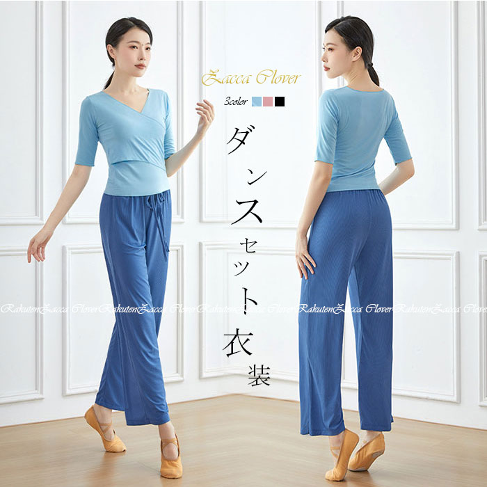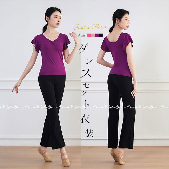 トップス+パンツ セット衣装 バレエ ベリーダンス ヨガウェア ルームウェアスポーツ アウトドア ヨガ ピラティス ウェア トップス