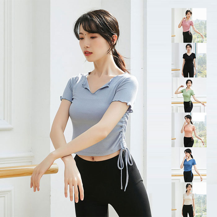 ダンス衣装 トップス バレエウェア ヨガウェア ヨガ トップス スポーツウェア ストレッチ 半袖 長袖 2種類 レディース 大人 ショート丈 ダンスウェア 練習 レッスン着 無地 エレガント 大人用