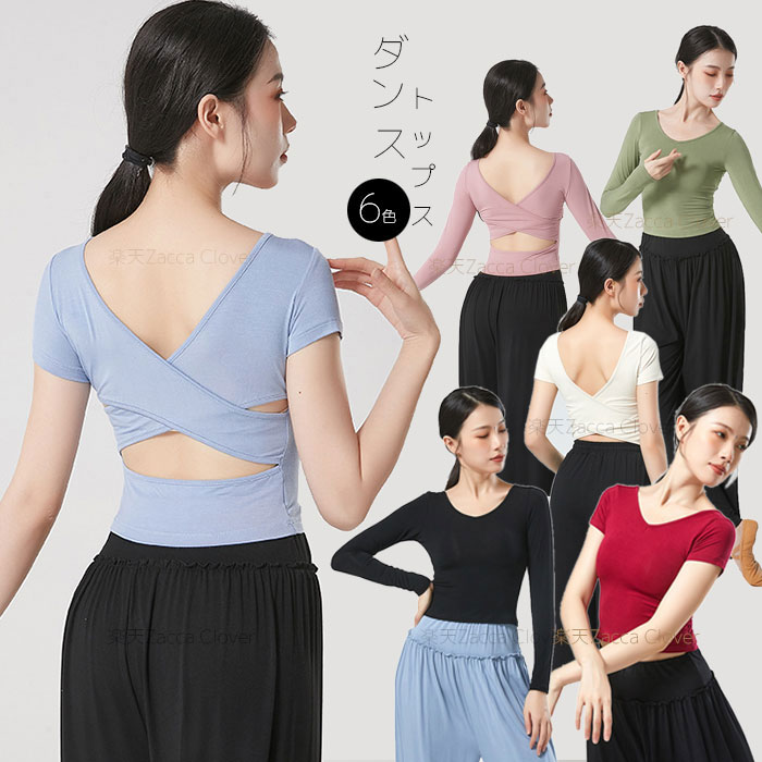 ダンス ヨガ トップス 半袖 長袖 クロス おしゃれ 丈短め レディース 背中開き 背中あき 伸縮性 ストレッチ レディース 大人 ダンストップス レッスン 着 バレエ用品 ダンス ヨガ スポーツ ト