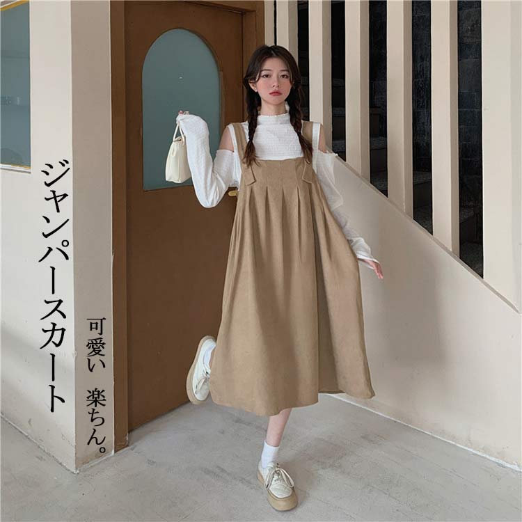 ワンピース サロペット レディース キャミワンピース ジャンパースカート スリット カーキ ブラック 無地 膝丈 ゆったり 着痩せ コーデ