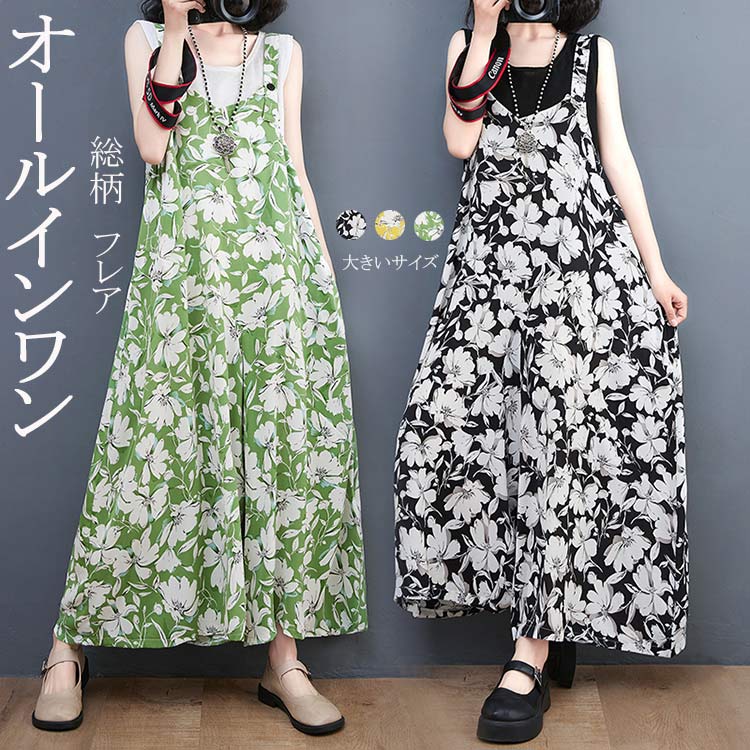 サロペット レディース 花柄 ガウチョパンツ マキシ丈 オーバーオール ワイドパンツ ロングパンツ 夏パンツ オールインワン 春 夏 海 旅行 カジュアル フェミニン