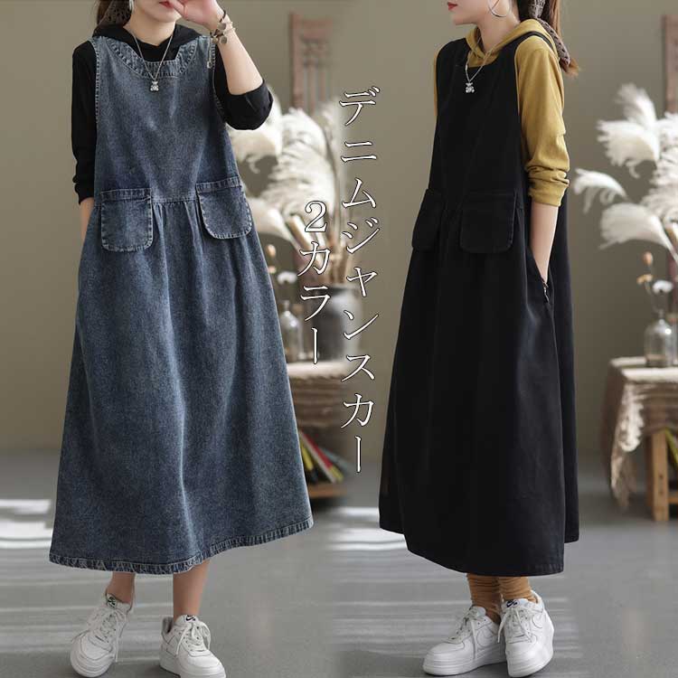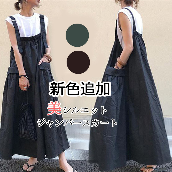 ジャンパースカート ワンピース フレアワンピース プルオーバー ジャンスカ スカート サロペット ロングワンピース サロペットスカート ジャンスカ 袖なし 大人 カジュアル シンプル