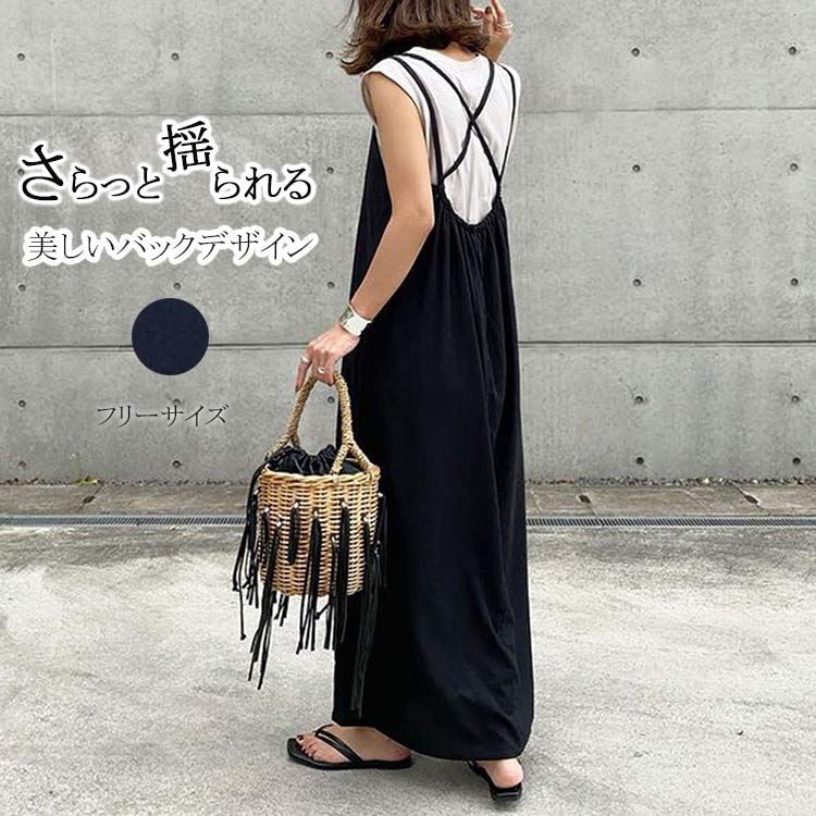大人マキシ丈♪ワンピース キャミソールワンピース 薄手 キャミワンピ 夏ワンピース マキシワンピース ワンピース ワンピ 大人 サロペット お洒落 着痩せ 黒 バックデザイン