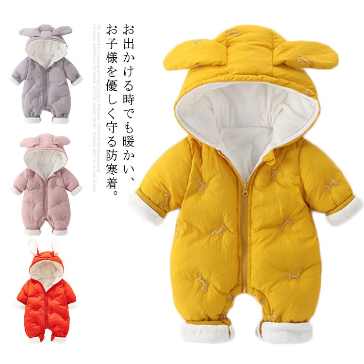 ベビー服 オールインワン 幼児服お出かけフード付き前ファスナー暖かい 秋冬用赤ちゃんユニセックス 女の子男の子中綿入り軽量可愛い