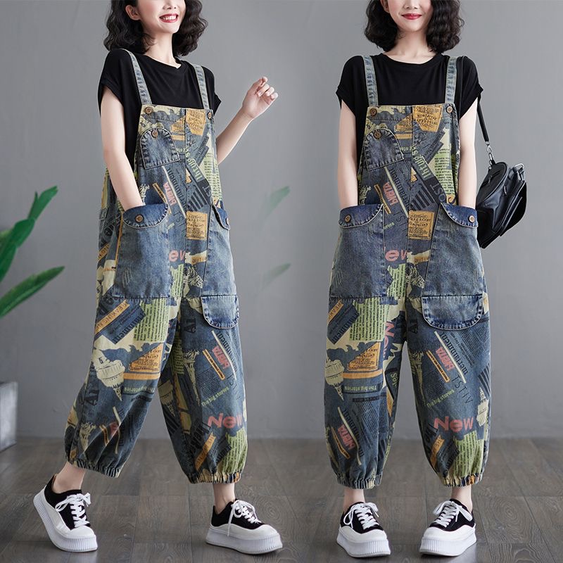 レディース オーバーオール 春夏 ジーンズ デニム ダメージ加工 九分丈 ゆったり サロペット 薄手 可愛い S M L XL 2XL SLTA009