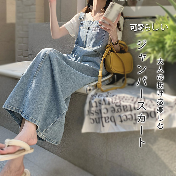 ロングで大人なジャンスカ デニムワンピース サロペットワンピース ノースリーブ 肩紐調節レディースファッション ジャンパースカート