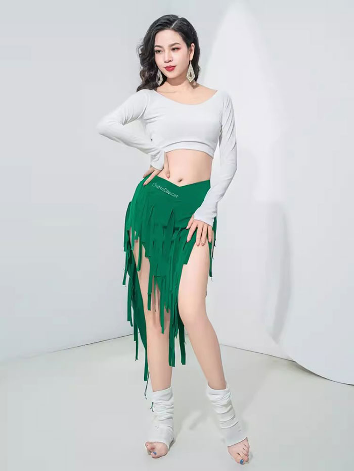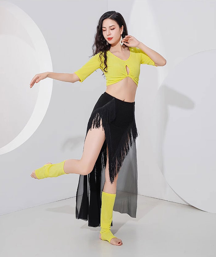 ベリーダンス衣装 セット衣装 フリンジ 可愛い ベリーダンス 衣装セット ニット レッグウォーマー 付き ロング丈 スカート 半袖 紐 トップス おしゃれ ベリーダンス 衣装 ダンス レッスン着 舞台